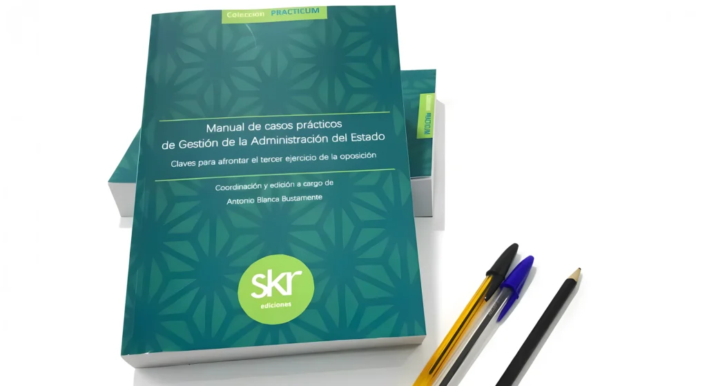 El Manual de casos prácticos de Gestión de la Administración del Estado. Claves para afrontar el tercer ejercicio de la oposición está editado por el centro de formación SKR Preparadores y coordinado por Antonio Blanca Bustamante, preparador y funcionario del Cuerpo de Gestión de la Administración Civil del Estado. El libro concentra en sus 556 páginas todo lo necesario para poder seguir con tu preparación, dándote el conjunto de herramientas necesarias para superar tu examen.