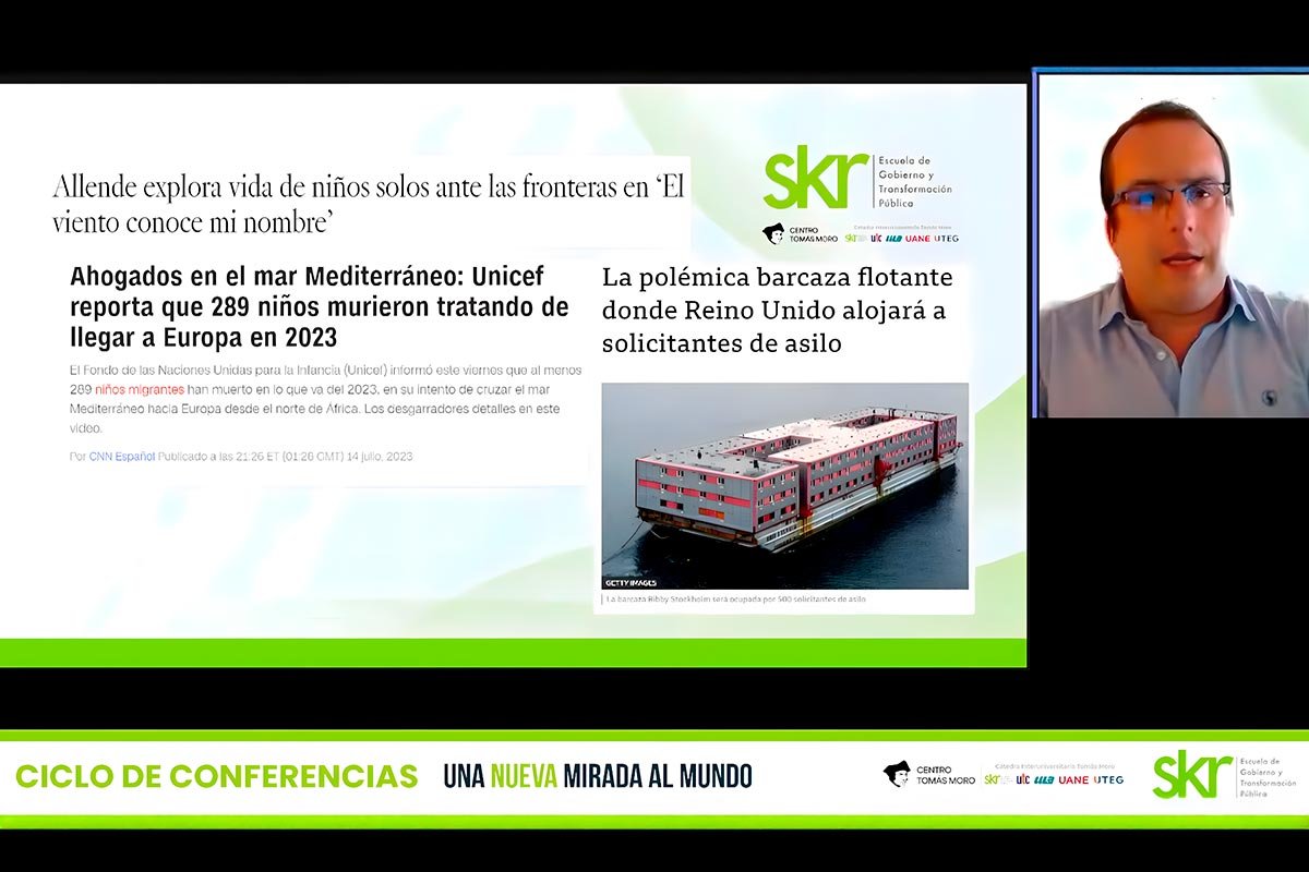 Juan Hernández Alfaro plantea durante la conferencia la necesidad de abordar las migraciones desde una nueva perspectiva que permita generar políticas públicas adecuadas. Si no basta con una idea abordada desde los derechos humanos y el respeto al ser humano, sostiene, se deben buscar otros enfoques que ayuden a ciudadanos e instituciones a entender que los planteamientos actuales sólo sirven para generar sufrimiento y frenar el desarrollo de nuestras sociedades, que generalmente se han enriquecido con el intercambio.